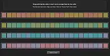 The Farnsworth–Munsell 100 Hue Color Vision test is a color vision test often used to test for color blindness. The system was developed by Dean Farnsworth in the 1940s and it tests the ability to isolate and arrange minute differences in various color targets with constant value and chroma that cover all the visual hues described by the Munsell color system.[1] There are several variations of the test, one featuring 100 color hues and one featuring 15 color hues. Originally taken in an analog environment with physical hue tiles, the test is now taken from computer consoles. An accurate quantification of color vision accuracy is particularly important to designers, photographers and colorists, who all rely on accurate color vision to produce quality content.