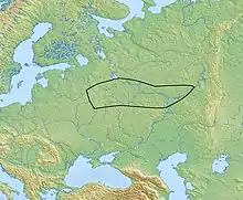 The Fatyanovo culture runs from Lake Pskov in the west to the middle Volga in the east, with its northern reach in the valley of the upper Volga.[5] The Volosovo culture of indigenous forest foragers was different from the Fatyanovo culture in its ceramics, economy, and mortuary practices. It disappeared when the Fatyanovo people pushed into the Upper and Middle Volga basin.[3]