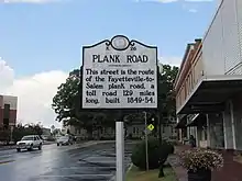 The Fayetteville and Western Plank Road was a 129 mi (208 km) plank road from Fayetteville, NC to the Moravian settlement at Bethania, NC.[1] The road was constructed from 1851-1852 using funds raised by boosters and accompanying funds provided by the state of North Carolina.