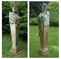 Female Herm and Male Herm are a set of two neoclassical marble herms in the outdoor sculpture collection of the historic Oldfields estate, located on the campus of the Indianapolis Museum of Art (IMA), in Indianapolis, Indiana. Together the herms depict either Dionysus and a Maenad or a dryad and a satyr.[1][2][3]