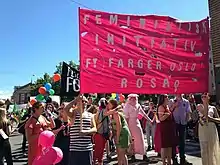 The party participating in a parade in Oslo in 2015
