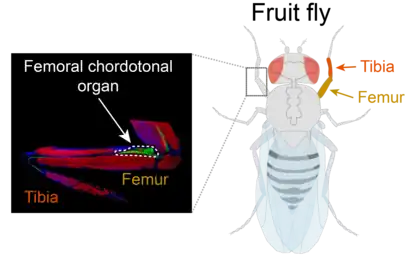 The femoral chordotonal organ is a group of mechanosensory neurons found in an insect leg (Figure 1) that detects the movements and the position of the femur/tibia joint.[1] It is thought to function as a proprioceptor that is critical for precise control of leg position by sending the information regarding the femur/tibia joint to the motor circuits in the ventral nerve cord and the brain[2][3][4][5]