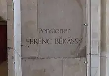 In a side chapel at King's College Chapel there is a plaque commemorating members of the college killed serving in the Great War, including Rupert Brooke. Carved into the stone of another wall there is a single name, that of Békássy. Keynes had asked the college to include him among those commemorated but another of the Fellows of King's, who had lost a son in the war, objected to the name of someone who had died fighting the Allies being listed with the other fallen.[3]