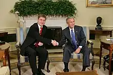 Gyurcsány with U.S. President George W. Bush in Washington, D.C., 7 October 2005