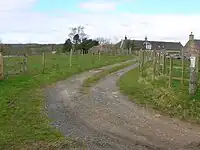 Fergushill is described in 1823 as 'a commodious farm house, covered with thatch: but its ancient gardens, pretty well stored with plum and other fruit trees, indicate its former rank.'[23] By 1991, all that remained of the old house were a few low walls near South Fergushill Farm and present day Fergushill cottage, a disused driveway and demolished gate-lodge.[16][24]