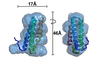 FerA had been predicted using Pfam and SMART and remained uncharacterized both structurally and functionally until recently.[7][14][15] It had been determined by secondary structure prediction however, that FerA domain contains several helices. Recently, a model of FerA structure obtained by homology models have been confirmed by fitting the calculated model into the FerA structure obtained by small-angle X-ray scattering (SAXS) experiments. These structural models provided evidence that FerA contains four helices, which fold to form a four-helix bundle.