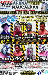 The annual IWRG Festival de las Máscaras ("Festival of the Masks") event is also partly a celebration or homage of lucha libre history with IWRG honoring wrestlers of the past at the events similar to Consejo Mundial de Lucha Libre's (CMLL) Homenaje a Dos Leyendas ("Homage to Two Legends") annual shows. The IWRG's Festival de las Máscaras shows, as well as the majority of their major IWRG shows in general, are held in Arena Naucalpan, owned by the promoters of IWRG and is their main venue. The 2016 Festival de las Máscaras show was the ninth year in a row IWRG held the show.[5][6][7][8][9][10][11][12] The 2016 show would be the first Festival de las Máscaras show to actually feature a Lucha de Apuestas match as well as the first Festival de las Máscaras to have a steel cage match main event.