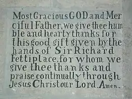 Inscription recording thanks to Sir Richard Fettiplace, Appleton church