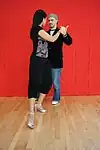 | Abrazo cerrado | V-shape close embrace | Salon and tango nuevo | The dancers' chests are closer to each other than their hips, and often there is contact at about the level of the chest (the contact point differing, depending on the height of the leader and the closeness of the embrace). In close embrace, the leader and the follower's chests are in contact and they are dancing with their heads touching or very near each other. | ![]() | ![]() |