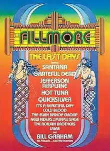Fillmore — also known as Fillmore: The Last Days, and as Last Days of the Fillmore — is a music documentary film, primarily shot at the Fillmore West auditorium in San Francisco, California, from June 29 through July 4, 1971.[2] It was released on June 14, 1972.[3][4]
