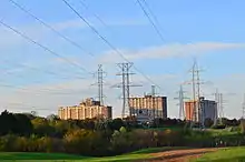 Finch Avenue was named after hotel owner John Finch, who operated John Finch's Hotel at the northeast corner of Finch Avenue and Yonge Street.[1] The road allowance was a concession road, and at one time, there were a number of older churches, schoolhouses, and cemeteries on each side of the road. In the 1950s, Ontario Hydro built a series of transmission lines around Toronto, and paralleled Finch from Highway 400 eastward into Pickering. A compressed natural gas pipeline also follows this routing.