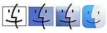 In a tradition dating back to the Classic Mac OS of the 1980s and 1990s, the Finder icon is the smiling screen of a computer, known as the Happy Mac logo.