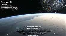 - ↑ First Orbit A new film of Yuri Gagarin’s flight, created to celebrate the first 50 years of human spaceflight, 62nd International Astronautical Congress, Cape Town, South Africa.