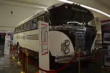 1949 Fitzjohn bus on display at the Terminal de Autobuses de Pasajeros de Oriente bus station in Mexico City