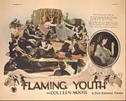Flaming Youth is a 1923 American silent drama film directed by John Francis Dillon and starring Colleen Moore and Milton Sills, based on the novel of the same name by Samuel Hopkins Adams. The film was produced and distributed by Associated First National. In his retrospective essay "Echoes of the Jazz Age", writer F. Scott Fitzgerald cited Flaming Youth as the only film that captured the sexual revolution of the Jazz Age.[1]