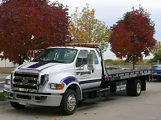 Some vehicle recovery tow trucks have flat beds and are able to winch a recovered vehicle entirely on board.[6] They can then drive the vehicle away for repair without needing to tow it.[6] This allows a faster journey, does not require a driver in the vehicle being towed, and allows a damaged vehicle to be recovered when it cannot be towed. As these flat beds usually slope gradually to the rear, unlike the level bed of a cargo flatbed, they are known as 'beavertails'. Some tow truck beds are demountable and may be lowered behind the truck for easy loading, then both bed and load winched back aboard as one.