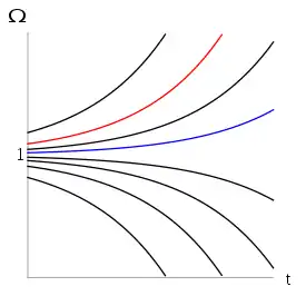 - ↑ Liddle[6] uses an alternative notation in which Ω0 is the current density of matter alone, excluding any contribution from dark energy; his Ω0+ΩΛ corresponds to Ω0 in this article.