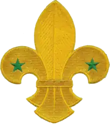 The fleur-de-lis is the main element in the logo of most Scouting organizations, representing a major theme in Scouting: the outdoors and wilderness.[1] The crest is white on a purple background. The white represents purity and the purple represents leadership and help given to others.[2]