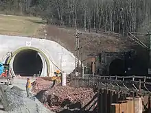 2. "30 Mio. Euro kostet neuer zweigleisiger "Ramholz-Tunnel" - Juni 2008 fertig (€30 million cost of new double track "Ramholz Tunnel" - completed June 2008)" (in German). Osthessen-News. 11 April 2007. Retrieved 10 June 2010.