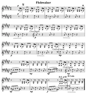 Flohwalzer (German: ['floːvaltsər] ⓘ, German for "Flea Waltz") is a simple piano piece, often one of the first learned because its fingering is simple and it allows beginners to perform a piece that is harmonically and rhythmically pleasing.