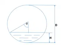 Consider a closed circular conduit of diameter D, partly full with liquid flowing inside it. Let 2θ be the angle, in radians, subtended by the free surface at the centre of the conduit as shown in figure (a).