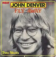 "Fly Away" is a 1975 song written and performed by John Denver featuring vocals by Olivia Newton-John.[1] Released as a single from the Windsong album, "Fly Away" peaked at No.13 on the Billboard Hot 100 chart and spent two weeks atop the adult contemporary chart in early-1976, Denver's sixth No.1 on this chart.[2] "Fly Away" also peaked at No.12 on the country chart.[3]