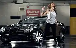 The video commences with a short segment of dramatic music. It then focuses on Cyrus, wearing a white tank top, jeans, boots and a black leather jacket, and her boyfriend leaving a theater and discussing the film they saw. Suddenly, Cyrus' boyfriend begins to cough as a full moon emerges from behind the clouds. Cyrus is confused, then horrified as she watches him transform into a paparazzo, and runs away from him as he shouts "Miley, come here! I just want a couple of shots!" and tries to snap pictures of her. The music of "Fly on the Wall" begins as Cyrus runs into a parking garage and tries to hide behind a pillar and a black Mercedes-Benz SLR McLaren. As soon as Cyrus tries to move away from the car, a mob of paparazzi begins to chase her with their cameras. Throughout much of the video, Cyrus runs and hides from the mob. Clips interspaced throughout the video feature her in a long silver shirt and jeans singing and dancing in front of the Mercedes. Eventually, Cyrus is cornered by the paparazzi. She is scared, but then surprised and perplexed when the mob unexpectedly begins to dance in a synchronized manner. Her boyfriend, appearing normal, then arrives in the Mercedes to rescue her. Inside the car, Cyrus describes her strange encounter with the paparazzi to him. Unbeknownst to Cyrus, he has planted a video camera in the car; the video concludes with a shot of the website he posts the video on beneath the headline, "Miley Cyrus Bugs at Paparazzi!!!" The "Fly on the Wall" music video was first seen on December 5, 2008, on MTV's FNMTV.[28] The video is inspired by Michael Jackson's iconic music video, "Thriller", but trades zombies for paparazzi. MTV also compared the "Fly on the Wall" video to those for Britney Spears' "Circus" and Lindsay Lohan's "Rumors".[28]