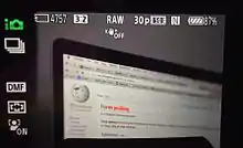 Focus peaking is a focusing aid in live preview or electronic viewfinders on digital cameras that places a white or coloured highlight on in-focus edges (contours) within an image using an edge detect filter.[1] [2] It was initially only common on video cameras, as the feature is incompatible with the optical viewfinders found on DSLRs. Some external monitors and some image organisation programs can also perform focus peaking separately from the camera body.[3] It is sometimes referred to as "focus assist" or "peaking highlights". Focus peaking is fast but it is considered to be inferior to digitally zooming in, and is not recommended when taking pictures with either a very narrow or very wide depth of field.[4][5][6]