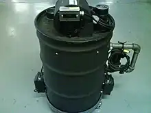 Heated fog machines use either an inert gas or an electric pump to propel mineral oil, propylene glycol, or glycerin and water mixture into a heat exchanger, where the solution is vaporized. The most commonly encountered form of heated fog machine is the pump machine. Very basic models of this type of machine consist of a fluid reservoir, an electric pump to move the fog fluid, and a heat exchanger, which vaporizes the fluid. More complex models may include a variety of other features, including variable speed pumps to control the output of fog, timer modules, or components for remote operation and monitoring of the fog machines' status. Some manufacturers have produced accessories and fluids that when combined with an ordinary heated pump machine, create fog effects similar to chilled fog machines. Gas propelled fog machines use an inert gas (most commonly CO2 or nitrogen) to propel either mineral oil or a glycol based fluid into a heat exchanger, where it is vaporized into particles, creating a fog. Some models of gas propelled fog machine provide control over the output of fog by varying the volume of gas used to propel the fluid.