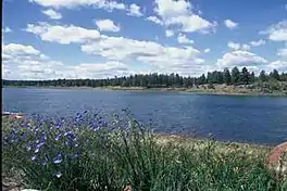 Fool Hollow was named for a hapless settler (Thomas Jefferson Adair[2]) who attempted to farm the rocky canyon in the 1880s. The Arizona Game and Fish Department constructed the lake, thereby covering up the community of Adair, in 1957 specifically to provide water-oriented outdoor recreation. The lake consists of 150 acres (61 ha), with an average depth of 23 feet (7.0 m). It is located within the Fool Hollow Recreation Area, and is cooperatively managed by the Arizona State Parks, the U.S. Forest Service, the Arizona Game and Fish Department and the City of Show Low. The elevation is 6,260 feet (1,910 m). It contains self-sustaining populations of Largemouth and Smallmouth Bass, Sunfish, Walleye, Carp, Black Crappie, Channel Catfish and Crayfish. The Arizona Game and Fish Department stocks the lake with Rainbow Trout throughout the spring and summer.