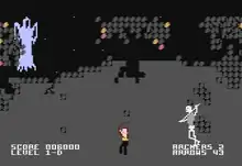 In this game the player controls an archer, armed with a bow and a limit of four quivers of arrows per level. The aim is to move through a forest setting while eliminating various monsters, including giant spiders, bees, mutated frogs, dragons,[3] wizards and snakes, with the final enemy being the Demogorgon.[4] The monsters were inspired by the films Night of the Demon, Jason and the Argonauts, and Mysterious Island.[1] The game has four levels of difficulty[3] (Innocent, Trooper, Daredevil and Crazy) which determine the number and speed of the monsters.