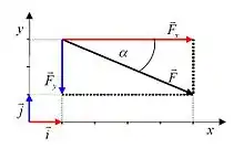 Angled force (F) redefined into components along axes (Fx) and (Fy)