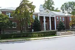 Ford Administration Building is a historic school located at Peekskill, Westchester County, New York. It was built in 1925 and is a two-story, I-shaped, red brick building in the Colonial Revival style. It features a central portico with four Doric order columns. The slate covered hipped roof is topped by a cupola. It houses the 500-seat Ford Auditorium. It was built for the Peekskill Military Academy (1833–1968) and is the last significant structure remaining from the academy.[2]