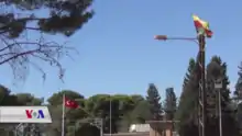 • Turkey Turkey – Neighbouring Turkey has received PYD co-chair Salih Muslim for talks in 2013[62] and in 2014,[63] even entertaining the idea of opening a representation office for the autonomous region in Ankara "if it's suitable with Ankara's policies."[64] Nonwithstanding, Turkey is persistently hostile, because it feels threatened by the autonomous region's emergence encouraging activism for autonomy among Kurds in Turkey and the Kurdish–Turkish conflict, and in this context in particular the autonomous region's leading Democratic Union Party (PYD) and the YPG militia being members of the Kurdistan Communities Union (KCK) network of organisations, which also includes both political and militant assertively Kurdish organizations in Turkey itself, including the Kurdistan Workers' Party (PKK). Turkey's policy towards the autonomous region is based on an economic blockade,[65] persistent attempts of international isolation,[66] opposition to the cooperation of the international Anti-ISIL-coalition with the militias of the autonomous region,[67] and support of Islamist Syrian Civil War parties hostile towards the autonomous region,[68][69] in past times even including ISIL.[70][71][72] Turkey has on several occasions also been militarily attacking the territory of the autonomous region and defence forces.[73][74][75] The latter has resulted in some of the most clearcut instances of international solidarity with the autonomous region.[47][76][77] In the perception of much of the Turkish public, the federal project of the autonomous region as well as U.S. support for the YPG against ISIL are elements of a wider conspiracy scheme by a "mastermind" with the aim to weaken or even dismember Turkey, in order to prevent its imminent rise as a global power.[78] Kurdish opposition party leader Selahattin Demirtaş has argued for Turkey and other countries to recognize the autonomous region and work with it as a partner.[79][80]