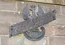 In the town there is a metal plaque to General Sikorski and the Polish troops commemorating the visit of King George VI and Queen Elizabeth to the town on 7 March 1941. The metal plaque is located on a wall on Market Street below Forfar Sheriff Court. It was here on 7 March 1941 that the Royal couple, along with General Sikorski, took the salute in the march past of the Polish troops.[18]