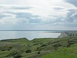 ![]() The lake seen from the Lewis and Clark Overlook east of the dam | |