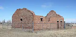 The fort grounds were 223 feet (68 m) by 400 feet (122 m), including a parade ground. The post was originally built for four companies, but was later expanded to accommodate six.[1] Nearly all of the buildings were constructed of wood except for the stone guardhouse, which was built in 1869 and remains the only structure standing on the original site today.[2] At least two additional buildings from the fort were moved to other locations in Laramie and survive today. The post Commander's quarters were moved to LaBonte Park and have been used as community center, and since 2010 the headquarters of the nonprofit food access organization Feeding Laramie Valley.[3] Another building became the Cavalrymen Supper Club.