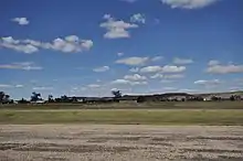 The post was intended for four companies. The men's quarters consist of two buildings, each 350 feet (110 m) long by 17 feet (5.2 m) wide, placed end to end, with an interval of 15 feet (4.6 m), which forms the sallyport. They are built of cottonwood logs, covered with pine siding, are lathed and plastered, the ceilings being 12 feet (3.7 m) high. Transverse partitions divide the buildings into dormitories, mess-rooms, kitchens, &c. The squad-rooms measure 20 by 17 feet (5.2 m), are intended for 16 men each, allowing about 255 cubic feet (7.2 m3) air space per man. The experiment was tried for one company of removing the partitions and throwing the small rooms into one, but it was thought that this weakened the building too much. There were no wash or bath-rooms. Ablution must be performed out of doors. It was in contemplation to build a piazza for each building. The dormitories were fitted with rough wooden double bunks in two tiers. The privies, ordinary earth latrines, are 75 yards distant. The ventilation of the barracks were very defective. There were three sets of laundresses' quarters, in a large one-story house similar to the officers' quarters.[9]