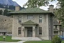 In 1903, Captain Chittenden oversaw the design and construction of the second stone building in Yellowstone, the engineers headquarters (Bldg 39), often called the "Pagoda" because of its design. This structure is in a prominent but isolated location just north of the fort.[5] In 1918, after the National Park Service began administration of the park, the engineer's headquarters building became the first official park headquarters.[19]