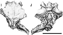 However, a recent study covering the phylogeny of Cerapoda using the same matrix as Bell et al. (2019) found Fostoria to be within the Rhabdodontomorpha, sharing the following features with the derived rhabdodontids: (1) A nearly vertical suture between its supraoccipital and opisthotics and (2) the length of the distolateral condyle on the distal extremity of femur (not accounting for its posterolateral condylid) is less than 40% the total distal width of the femur.[2]