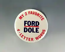 Occasionally, the phrase "four-letter word" is humorously used to describe common words composed of four letters. Examples include the word work, implying that work can be unpleasant, or the game of golf, jokingly referred to as a four-letter word when a player's pastime becomes an exercise in frustration. In 1993, Charlotte Observer journalist Doug Robarchek noted how many U.S. politicians have names with four letters, humorously observing, "Ever notice how many U.S. politicians have names that are also four-letter words? Ford, Dole, Duke, Bush, Gore ... and how many make us think of four-letter words?"[5]