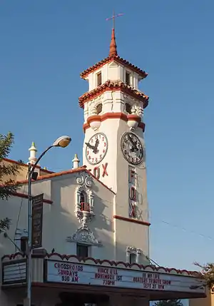 The Visalia Fox Theatre is a landmark movie palace and theater in downtown Visalia, California. Opened in 1930 as a part of the Fox Theatre chain, it was converted to a three screen multiplex in 1976. After a brief closure in the late 1990s, it was restored by a community group and reopened in 1999 as a live performance auditorium with a seating capacity of 1,275.[1][2]