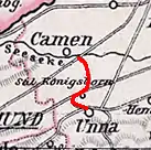 The next section from Unna to Unna-Königsborn was a joint project with the Royal Railway Division of Essen and built in just over a year. It was opened on 1 April 1900, originally for freight only.[3]