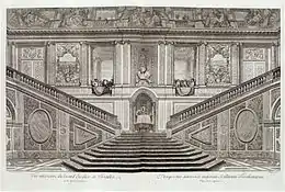 At Versailles he is thought to have been primarily responsible for the design of the Escalier des Ambassadeurs (decorated by Charles Le Brun), although d'Orbay apparently relied very heavily on an earlier design by Claude Perrault for a stairway at the Louvre.[2]