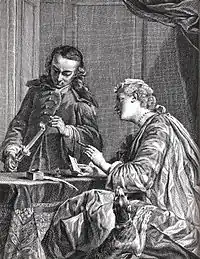 After the peace Jaupain continued his interceptions of the mail, but now also in the service of the Austrian authorities, even though he also on occasion spied on Dominik von Königsegg-Rothenfels, who acted as the governor of the Austrian Netherlands in Prince Eugene's absence.[14] But he also acted as a spymaster for Prince Eugene. In that capacity he tried to recruit de French spy Lenglet, who, however turned out to be a double agent.[15] In this period the British were still very interested in the Jacobite court in exile in France and Jaupain continued to be of value to them[16]