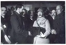 In late September General Louis Franchet d'Espèrey ordered Jouinot-Gambetta to advance on Skopje during the Vardar Offensive. Jouinot-Gambetta led his brigade into the midst of a retreating mass of Bulgarians, navigating pockets of resistance from German troops.[7] His brigade advanced along the Crna River and took Prilep on 23 September. Skopje was captured, without resistance, on 29 September.[8] During the advance Jouinot-Gambetta's brigade had covered 57 miles (92 km) in six days.[3]