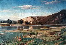 François Roffiaen, On the banks of the river Meuse at Waulsort (oil on panel, 1876)
