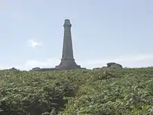On the highest point of Carn Brea in Cornwall is a 90-foot (27 m) high celtic cross, erected by public subscription in 1836. It is dedicated to Francis Basset and inscribed "The County of Cornwall to the memory of Francis Lord de Dunstanville and Basset A.D. 1836".[7][8] 50°13′16″N 5°14′56″W / 50.22111°N 5.24889°W / 50.22111; -5.24889 (Basset Cross)