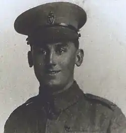 Edwards was born into a working-class family in Chelsea, London.[2] He married, but his wife and child both died in 1913.[3] On the outbreak of the war in August 1914 he was working as a stationer's assistant, but promptly enlisted in the 1st Battalion, London Irish Rifles,[4] who were based at the Duke of York's Barracks on the King's Road, Chelsea.[5] A keen footballer, Edwards soon became captain of his battalion's football team, and led them to victory in the Brigade Final, only days before they were sent to France in March 1915.[2]