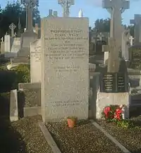 In 1963, historian Enno Stephan located Ryan's grave in Dresden, German Democratic Republic. Three volunteers of the International Brigades, Frank Edwards, Peter O'Connor and Michael O'Riordan travelled to East Germany as a guard of honour to repatriate Ryan's remains in 1979. On 21 June his remains arrived in Whitefriar Street church – his local church when he was in Dublin. The church was packed with all shades of Republican and left-wing opinion, as well as those from his past such as the Stuarts, Elizabeth "Budge" and Helmut Clissmann, Peadar O'Donnell (who spoke at the service), George Gilmore, and ex-comrades and sympathizers from all over the world. The cortege on its way to Glasnevin Cemetery halted at the GPO in memory of the dead of 1916. His coffin was borne to the grave in Glasnevin Cemetery by Irish veterans of the Spanish Civil War, Frank Edwards, Peter O'Connor, Michael O'Riordan and Terry Flanagan. Con Lehane delivered the funeral oration while a piper played "Limerick's Lamentation".[32] He is buried next to Eamonn MacThomais.